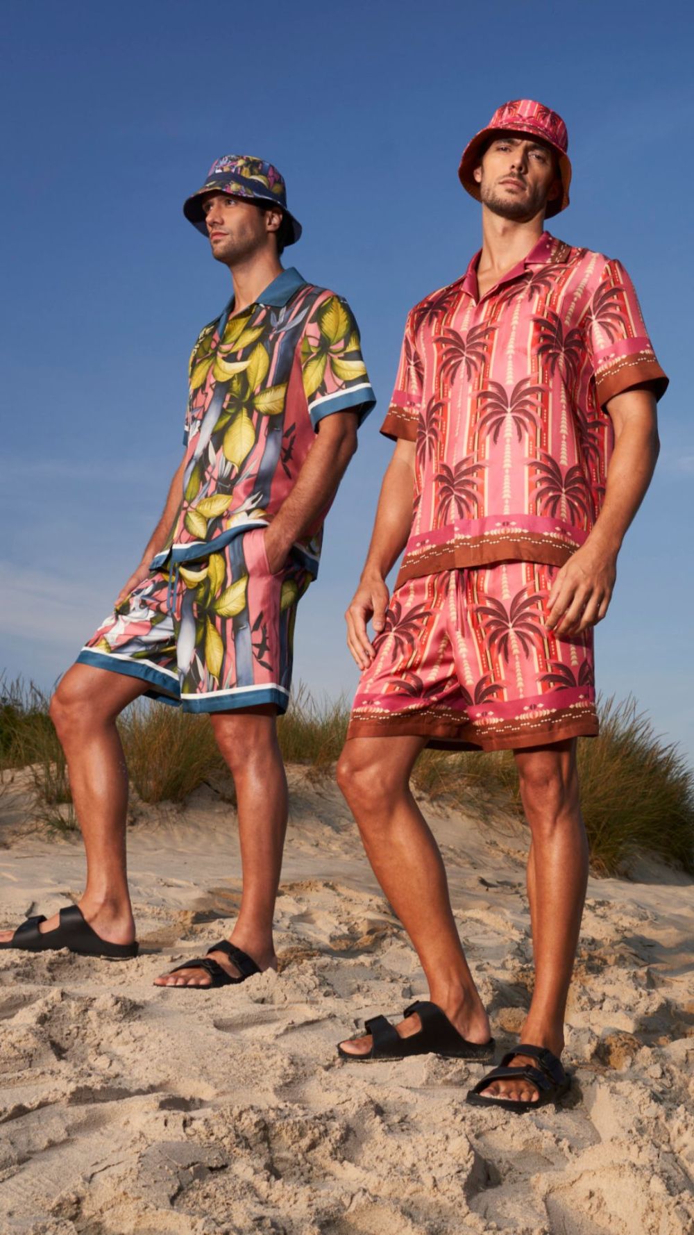 Badeshorts mit passenden T-Shirts, Polos oder Hemden in trendigen Mustern oder in Uni. Made in Italy für Männer und Knaben. Als besonderer Blickfang im Partnerlook von Vater und Sohn.